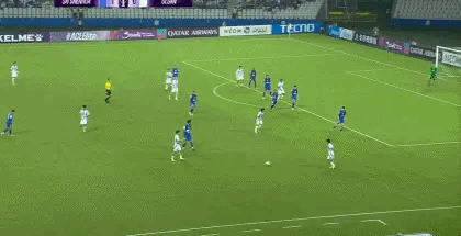 第74分钟,阿苏埃罚球弧前沿停球稍大但形成单刀赴会,面对出击的赵贤祐捅射被封出。